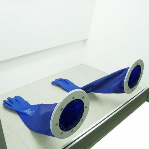 Установка перчаток в защитный экран из ОРГСТЕКЛА