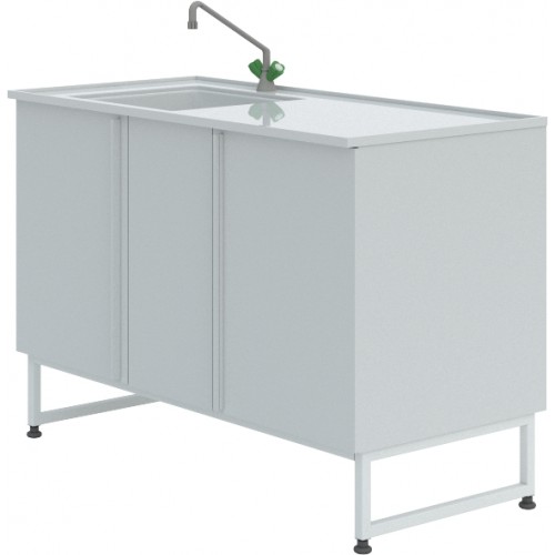 Мойка лабораторная химическая ЛК-1200 СМС-ПВ (1 раковина, 1 смеситель) для посуды устанавливается на прочный металлический сборно-разборный каркас с полимерным покрытием серого цвета.