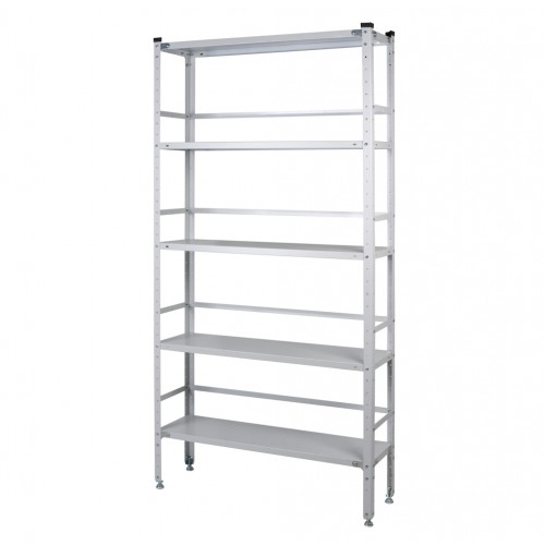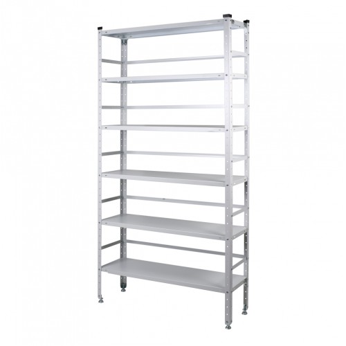 - Распределённая нагрузка на полку до 80 кг, суммарная нагрузка на стеллаж до 400 кг.