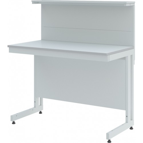 Стол лабораторный с полкой ЛК-1200 СМ cостоит из прочного сборно-разборного металлического каркаса с полимерным покрытием серого цвета (RAL 7030), металлической надстройки с полкой из ламинированной ДСП и столешницы. Материал поверхности можно выбрать из нескольких вариантов руководствуясь протоколом испытания материалов столешниц. Правильный выбор материала является залогом долгой службы изделия.