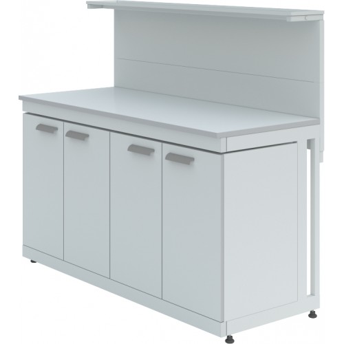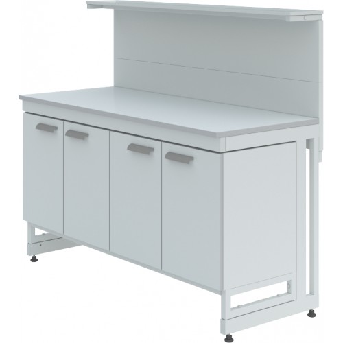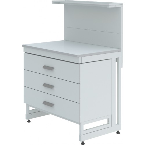 В каркасе лабораторного стола лабораторного с полкой ЛК-1200 СМ предусмотрены регулируемые опоры в диапазоне 0-30 мм для компенсации неровностей пола. Дополнительно может комплектоваться различными тумбами (подвесными, подкатными).