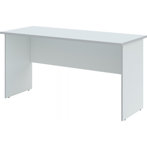 Стол письменный выполнен из ламинированной ДСП. Состоит из столешницы, двух боковых опор и поперечной царги. Толщина столешницы - 16 мм. Дополнительно может комплектоваться подкатными тумбами.