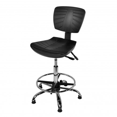 Материал сиденья и спинки лабораторного стула GEMA - мягкий литой полиуретан черного цвета, позволяющий работать в условиях больших знакопеременных нагрузок и температур.