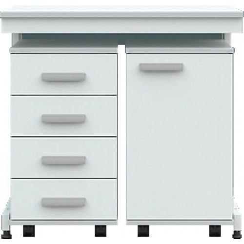 3. Лабораторная подкатная тумба ЛК-400 ТПД-В с дверцей устанавливается на роликовые опоры со стопорным механизмом.