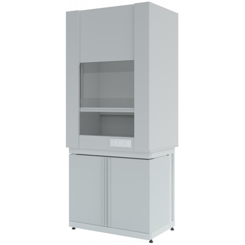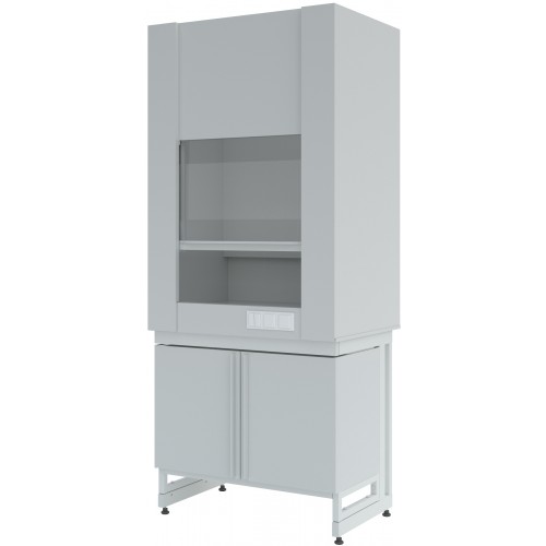 Вытяжная камера шкафа (верхняя часть) изготовлена из монолитного листового полипропилена, который обладает очень высокой химической стойкостью. Рабочая камера имеет две зоны вытяжки — сверху и снизу рабочего объёма. Нижняя часть - сборно-разборный металлический каркас с полимерным покрытием серого цвета (RAL 7030). В каркасе предусмотрены регулируемые опоры в диапазоне 0-30 мм для компенсации неровностей пола.