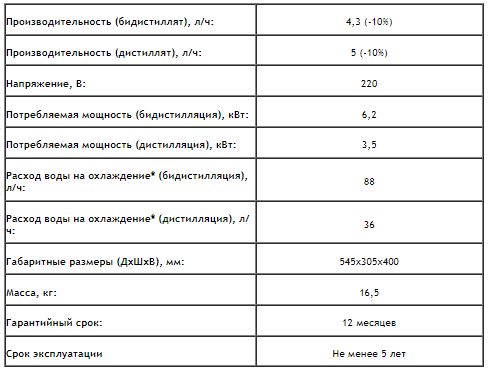 - Встроенный охладитель для получения бидистиллята с температурой не более +40°С.