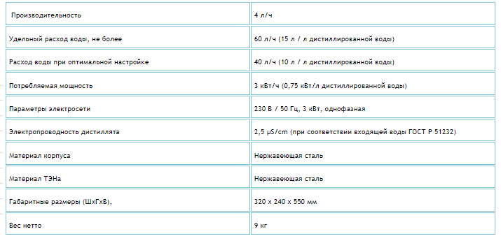 - Высокое качество дистиллята - проводимость не более 2,5 μS/cm (при соответствии входящей воды ГОСТ Р 51232), соответствует Фармакопее (очищенная вода ФС 42-2619).