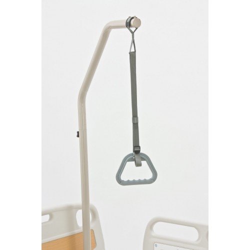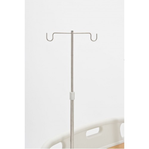 Рама кровати имеет отверстия для установки стойки-держателя для внутривенных инъекций, устройства для подтягивания.