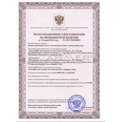 Кровать предназначена для использования как в лечебных учреждениях для ухода, диагностики и лечения пациентов под наблюдением врача, так и в домашних условиях - для профилактики, лечения и восстановления больных.