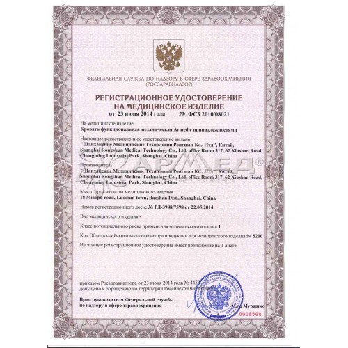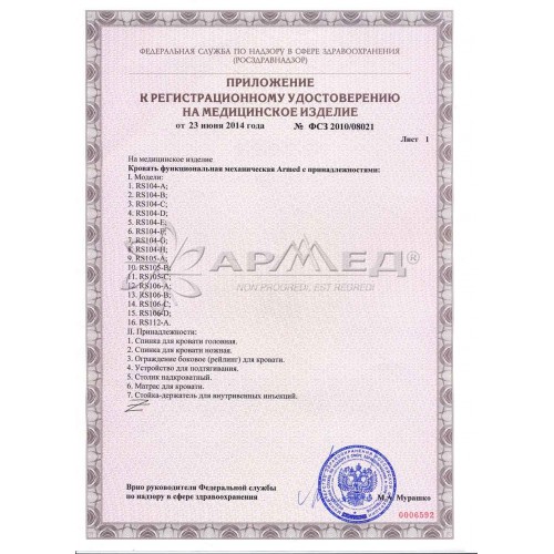Кровать функциональная механическая Armed с принадлежностями RS105-А, 300100016, Медицинская мебель