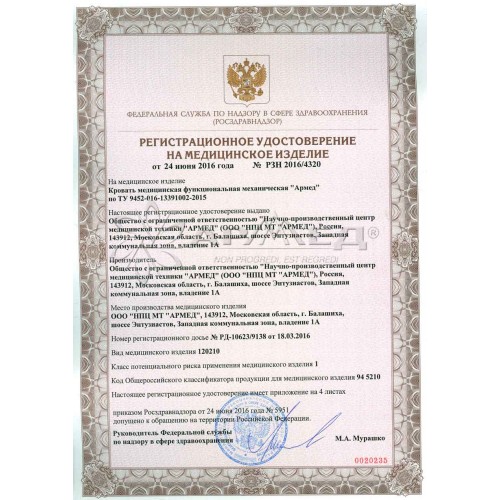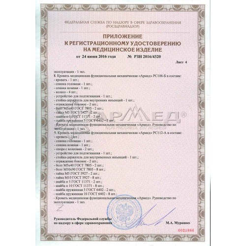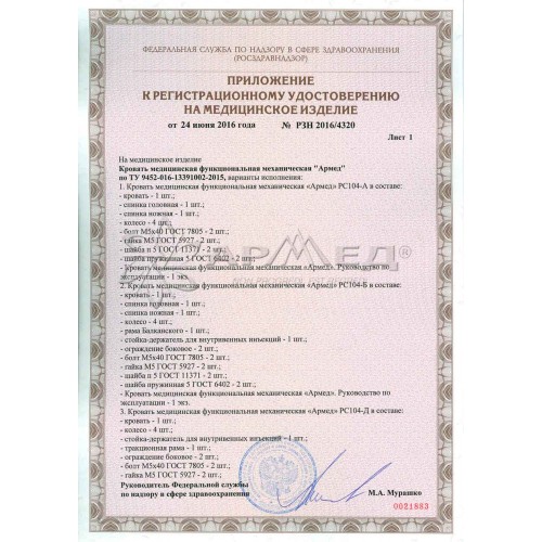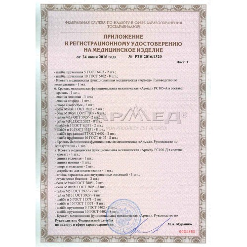 Кровать предназначена для использования как в лечебных учреждениях для ухода, диагностики и лечения пациентов под наблюдением врача, так и в домашних условиях - для профилактики, лечения и восстановления больных.