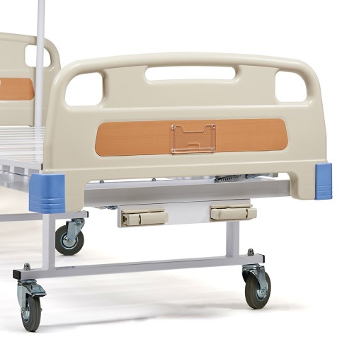 Колеса кровати имеют стальные несущие части, 2 колеса с индивидуальными педальными тормозами.