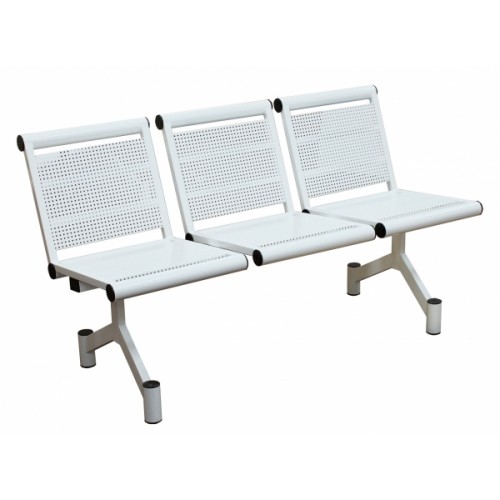 Секция стульев трёхместная - предназначена для установки в местах отдыха и ожидания. Каркас выполнен из стального профиля с нанесением экологически чистой эпоксидной полимерно-порошковой краски, устойчивой к регулярной обработке дезинфицирующими и моющими средствами. Стандартный цвет каркаса - белый глянцевый.