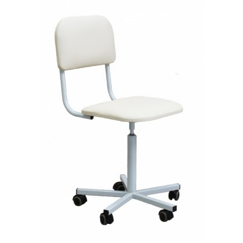 Каркас изготовлен из стального профиля с нанесением экологически чистой эпоксидной полимерно-порошковой краски, устойчивой к регулярной обработке дезинфицирующими и моющими средствами. Стандартный цвет каркаса - светло-серый полуматовый. Верхний элемент изготовлен с применением винилискожи, устойчивой к истиранию и воздействию дезинфицирующих средств. Опорные колеса пятилучья имеют двойные прорезиненные ролики.