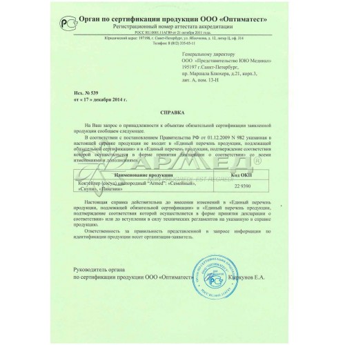 Совместим с большинством концентраторов кислорода "Armed".