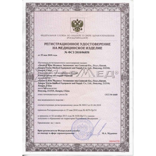 Концентрация кислорода на выходе (при производительности ≥ 5 л/мин): ≥ 93±3%