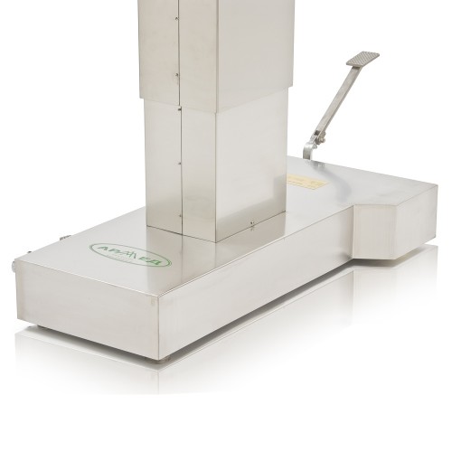 Основание операционного стола, основные элементы конструкции, а также металлические части аксессуаров выполнены из нержавеющей стали.