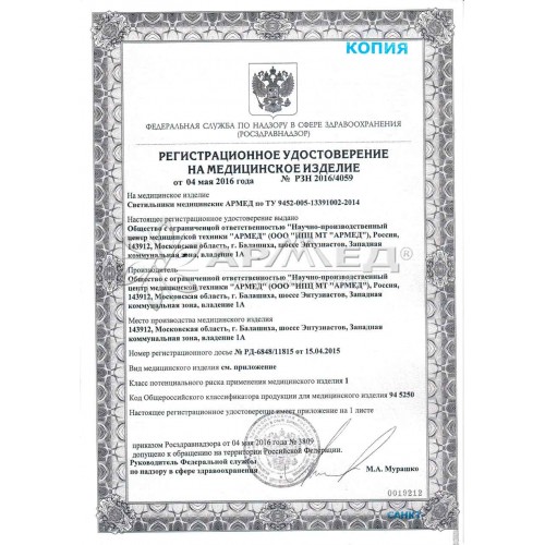 Светильник медицинский АРМЕД: ЛД-2-ЛЕД предназначен для общего освещения рабочего поля при медицинских обследованиях, после операций, для диагностики и осмотров в таких областях как гинекология, терапия, хирургия и т.д. в лечебно-профилактических учреждениях