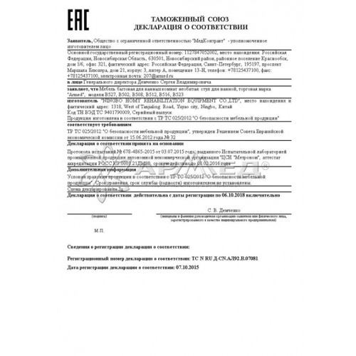 Стул для ванной B527 предназначен для использования в стационарных медицинских учреждениях и домашних условиях, используется как санитарно-гигиеническое приспособление, не предназначенное для транспортировки.