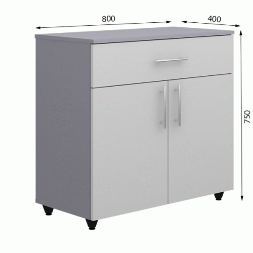 Шкаф низкий с ящиком и дверцами используется в общественных помещениях различного назначения, для оснащения рабочих мест. Изделие предназначено для хранения канцелярских принадлежностей, документов, сочетает в себе рациональность конструкции и надежность эксплуатации. Шкаф установлен на регулируемые опоры высотой 50 мм. Расстояние между полками: 200 мм.