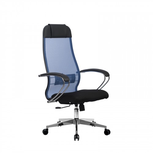 - синяя спинка с черными накладками подлокотника и черным сиденьем;