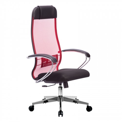 - красная спинка с черными накладками подлокотника и черным сиденьем.