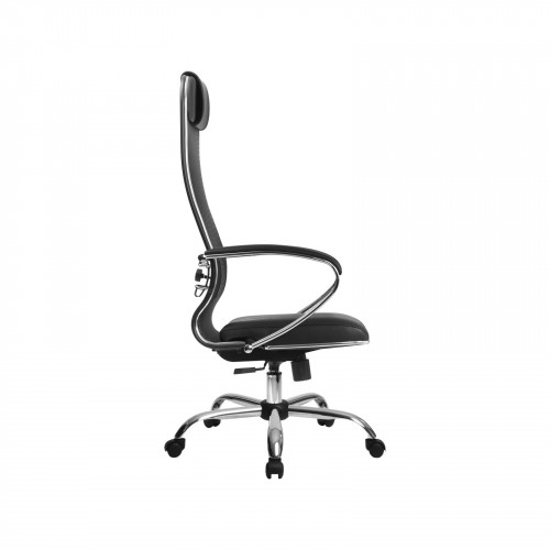 Спинка: высокая с мягким подголовником, черное полимерное покрытие каркаса;