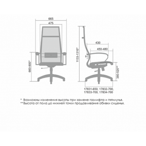 **Высота сиденья в верхнем и нижнем положении может быть изменена, в зависимости от модели применяемого газ-лифта.