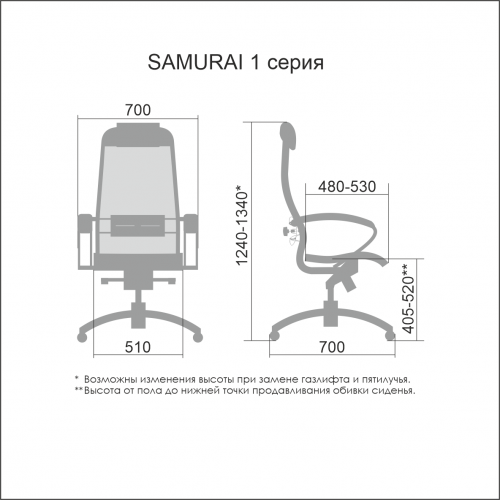 **Высота сиденья в верхнем и нижнем положении может быть изменена, в зависимости от модели применяемого газ-лифта.