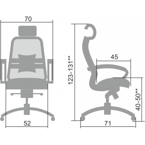 **Высота сиденья в верхнем и нижнем положении может быть изменена, в зависимости от модели применяемого газ-лифта.