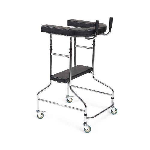 Ходунки оснащены мягким, съемным сиденьем из искусственной кожи.