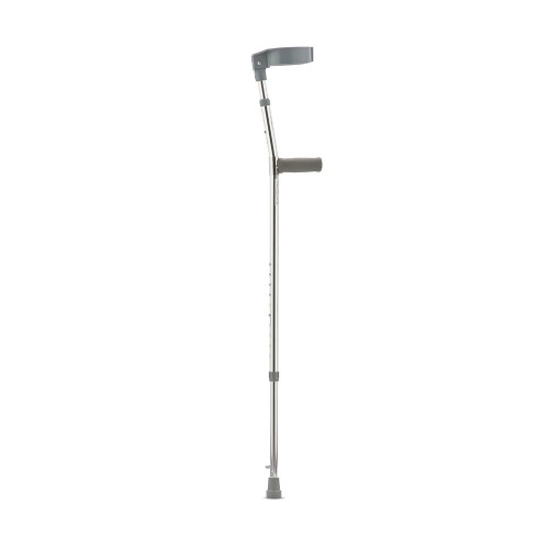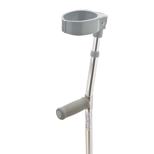 Костыль с опорой под локоть изготовлен из легкого, прочного и устойчивого к коррозии алюминиевого сплава.
