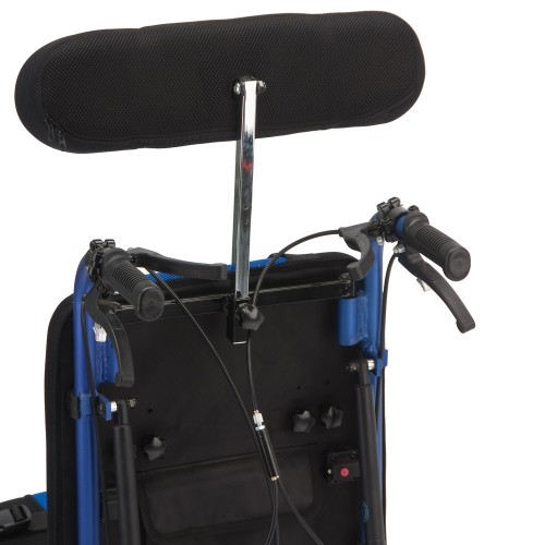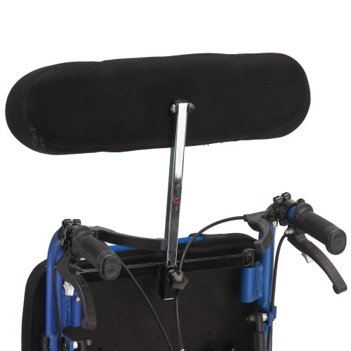 Кресло-коляска оснащена съемным, регулируемым по высоте мягким подголовником.