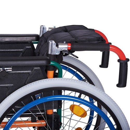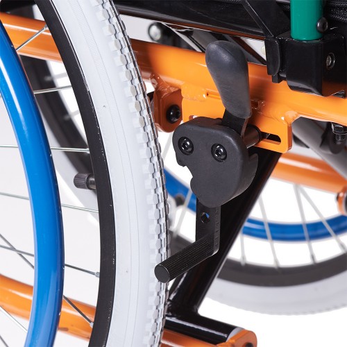 Кресло-коляска снабжена рычагами стояночного тормоза слева и справа.