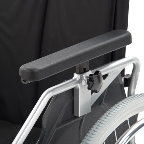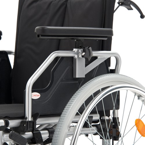 Кресло-коляска оснащена несъемными, откидными, регулируемыми по высоте подлокотниками.