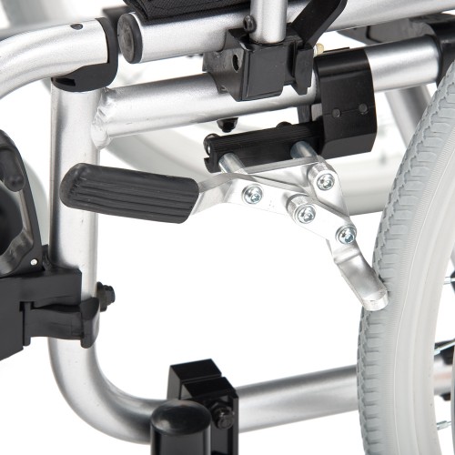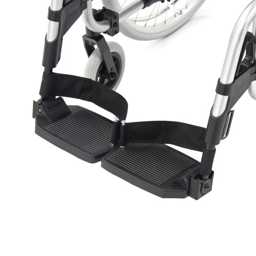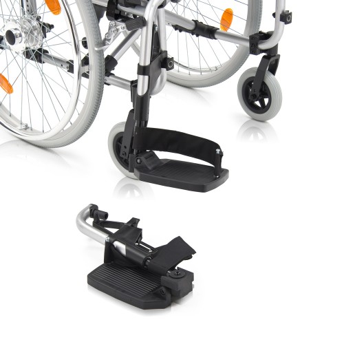 Кресло-коляска оснащена съемными, поворотными подножками, регулируемыми по высоте с мягким упором для голени.