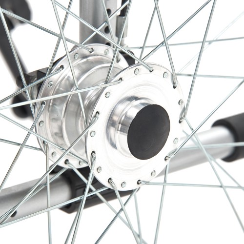 Кресло-коляска оснащена колесами, имеющими пневматические или цельнолитые задние и передние цельнолитые шины.