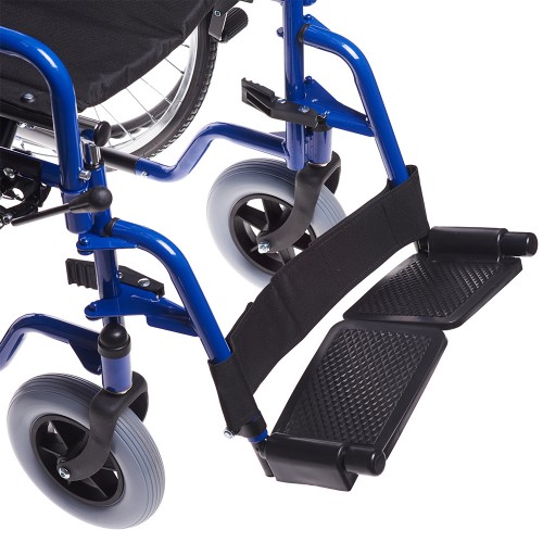 Кресло-коляска оснащена съемными,поворотными, регулируемыми по длине подножками с мягким упором для ног.