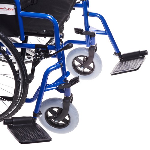 Кресло-коляска снабжена рычагами стояночного тормоза слева и справа.