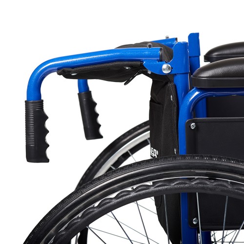 Спинка кресла-коляски сзади оснащена удобным карманом.