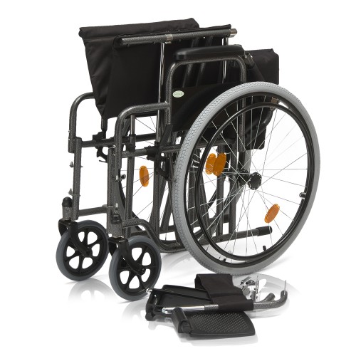 Кресло-коляска оснащена съемными, ступеньчатыми подлокотниками.