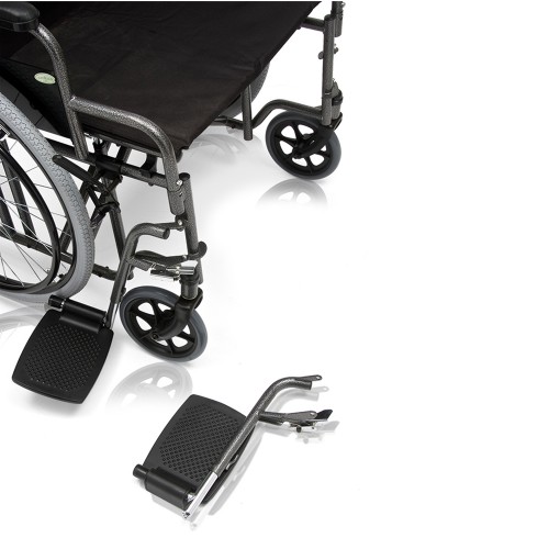 Кресло-коляска оснащена съемными, поворотными, регулируемыми по высоте подножками с мягкими упорами для ног.