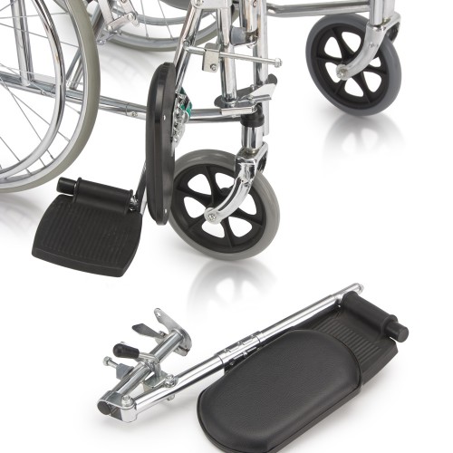 Кресло-коляска оснащена съемными, откидными, регулируемыми по высоте подножками.