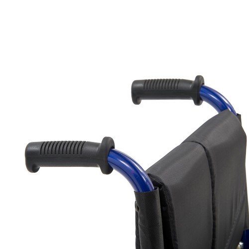 Рама кресла-коляски изготовлена из металлического сплава с эмалевым покрытием.