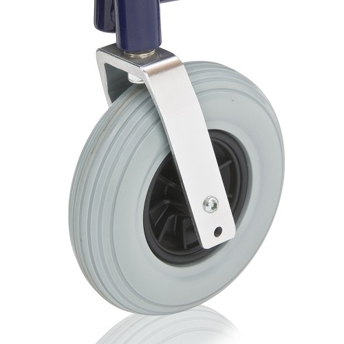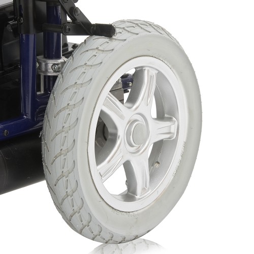 Кресло-коляска оснащена колесами, имеющими пневматические задние и передние цельнолитые шины.
