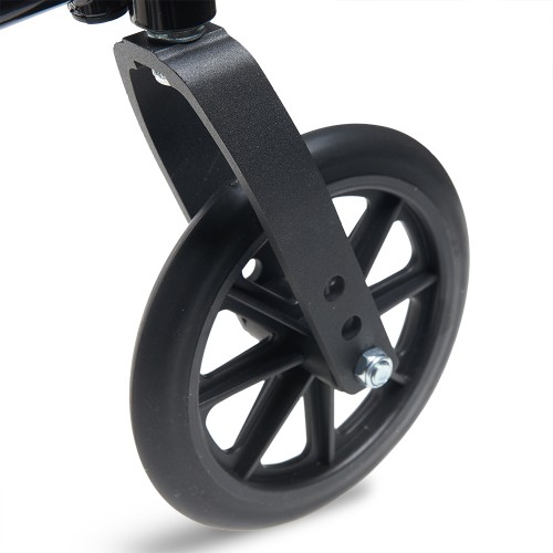 Кресло-коляска оснащена колесами, имеющими задние и передние цельнолитые шины.