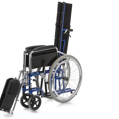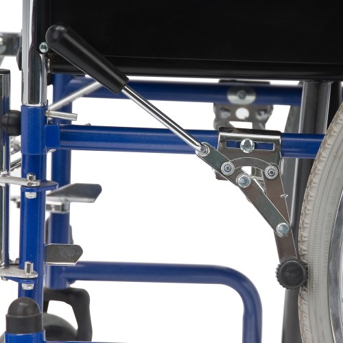 Рама кресла-коляски - складная, изготовлена из металлического сплава с эмалевым лакокрасочным покрытием.