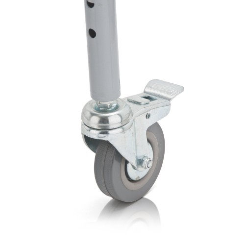 Высота кресла-коляски регулируется пятиуровненым кнопочным фиксатором через каждые 2,5 см.