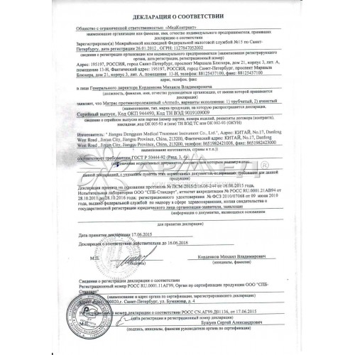 Матрас представляет собой противопролежневую систему, состоящую из матраса и компрессора.