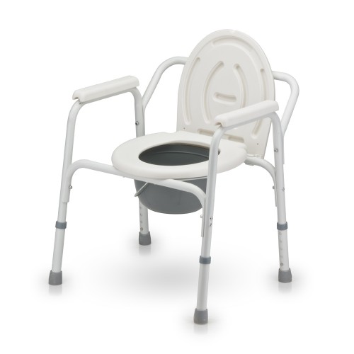 Высота кресла-туалета регулируется пятиуровневым кнопочным фиксатором через каждые 25 мм.
